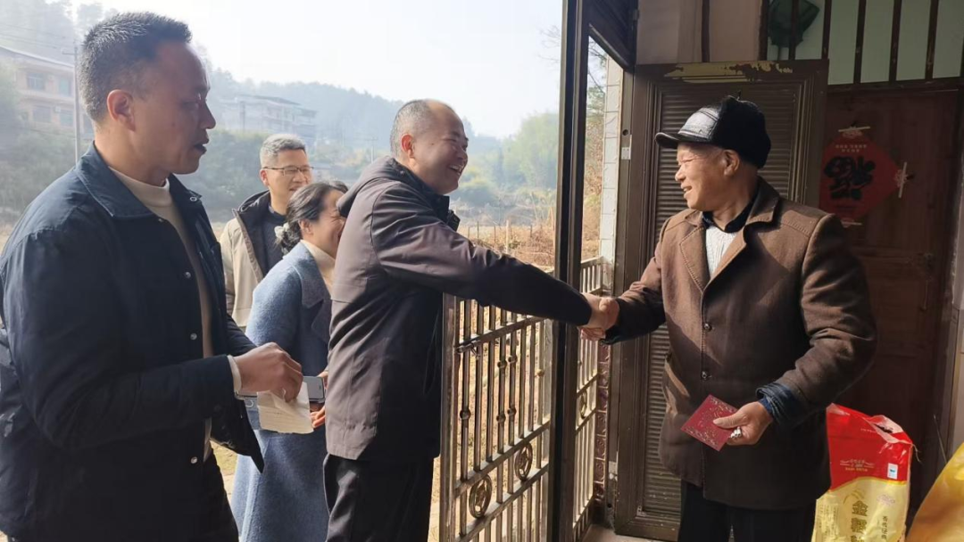 1月28日,冬日暖阳。双峰县委党校总支书记、常务副校长刘定才率领校委成员和科室负责人,深入双峰县沙塘乡九龙村,开展走访慰问活动。