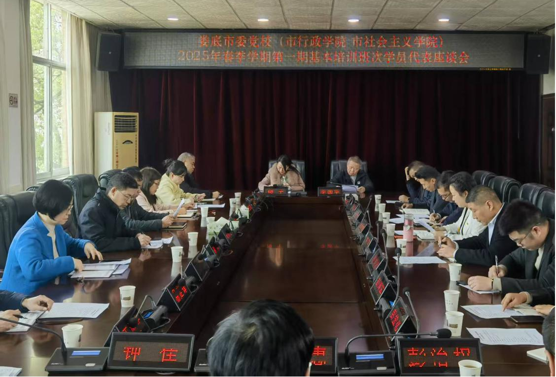 为听取学员对教学培训工作的意见建议,进一步提升教育培训质效。4月1日,娄底市委党校召开2025年春季学期第一期基本培训班次学员代表座谈会,常务副校长(副院长)周向红出席,相关校领导、5个基本培训班班主任、学员代表及相关部室负责人参加。