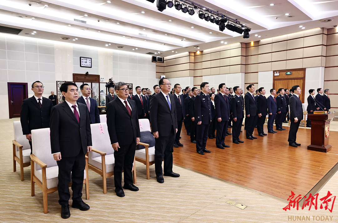 宣誓后,毛伟明指出,宪法宣誓既是一项法定仪式,更是一项庄严承诺。大家要珍惜职责、不负重托,更好依法履职、担当作为。要坚持绝对忠诚本色。始终旗帜鲜明讲政治,始终在思想上、政治上、行动上同以习近平同志为核心的党中央保持高度一致,确保党中央决策部署在湖南落地生根、开花结果。要坚持依法行政原则。把依法行政贯穿于决策、执行、监督和服务全过程各方面,持续提高运用法治思维和法治方式深化改革、推动发展、化解矛盾、维护稳定、应对风险的能力,让法治成为政府工作的鲜明底色。要坚持为民服务初心。用心用情办好每一件民生实事,千方百计解决好群众急难愁盼,实现好、维护好、发展好最广大人民的根本利益,让民生福祉更加可感、可及。要坚持清廉从政底线。始终把深入贯彻中央八项规定精神学习教育常态化、长效化,持之以恒改作风、树新风,时时自警、自省、自律,处处慎权、慎独、慎微,做到一心为公、一身正气、一生为民。