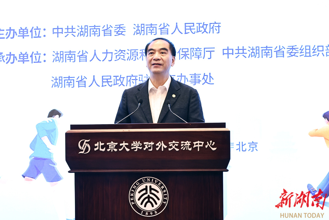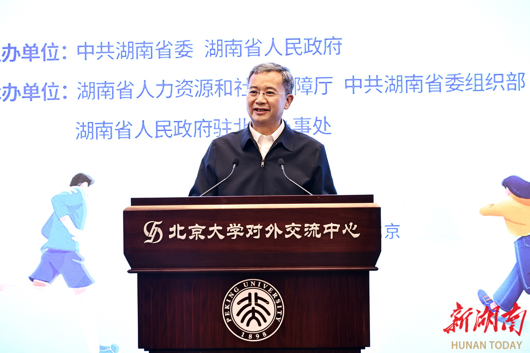 龚旗煌说,湖南与北京大学渊源深厚,从长沙临时大学的并肩守望,到新时代产学研的同频共振,双方铸就了深厚的历史情谊与坚韧的精神纽带。此次湖南专场招聘来到北京,是扩大并深化校地合作的具体体现。我们鼓励支持更多青年学子选择湖南,为湖南经济社会发展贡献青春力量。希望广大学子胸怀“国之大者”、在时代主题中找准人生坐标,面向新质生产力、在关键急需产业中淬炼真本领,到祖国最需要的地方去、在扎根实践中成就更大作为。